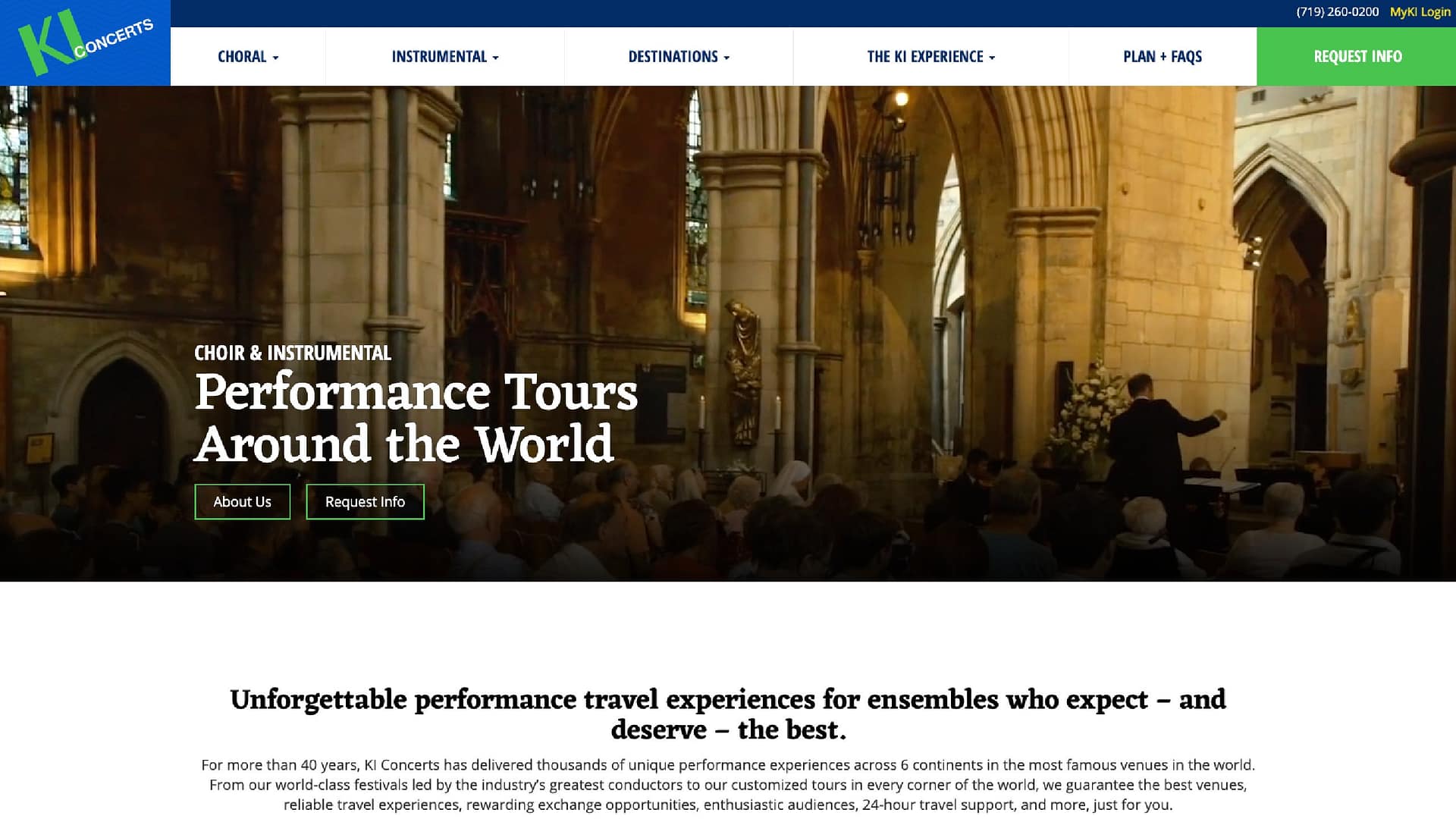 As KI Concerts tempts visitors with unforgettable trips, it was essential that the website have bright, bold colors and photography throughout.